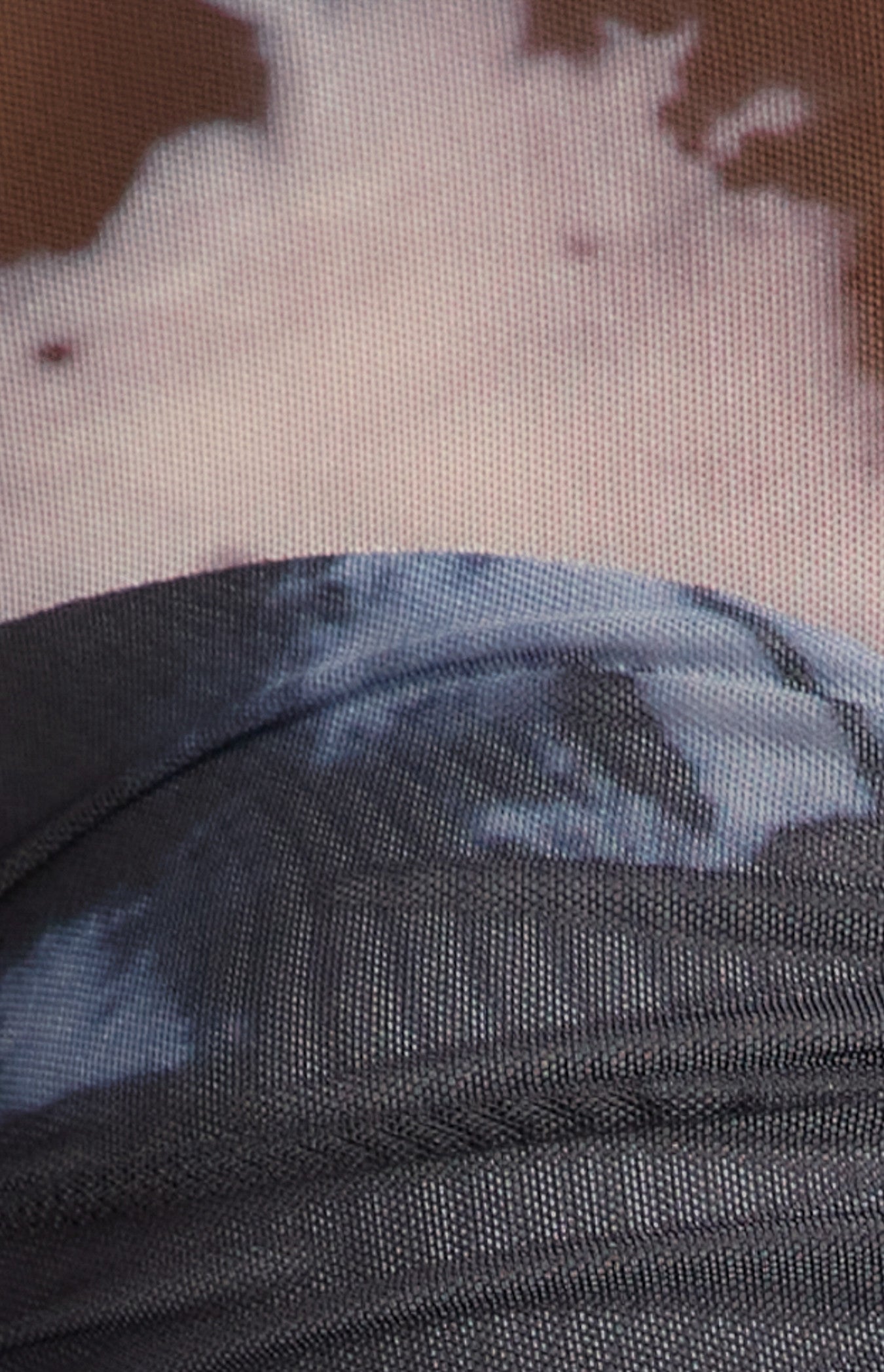 ● Sheer Mesh Fabrication: Lightweight and breathable with a delicate, layered effect