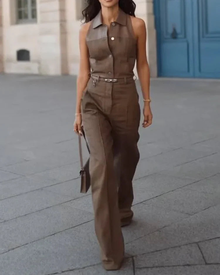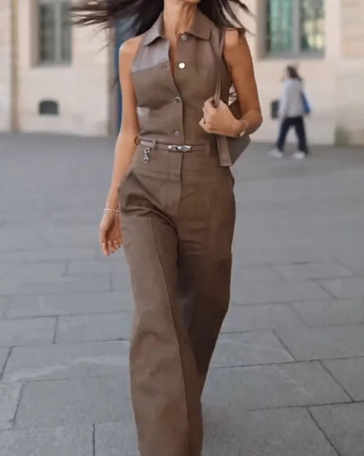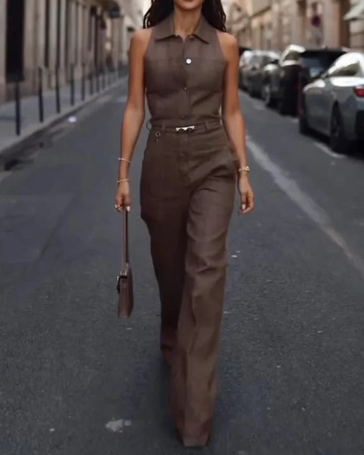 Step into effortless style with our Sleeveless Lapel Two-Piece Suit – the perfect blend of comfort and sophistication. Designed for the modern woman, this casual yet polished set features a sleeveless lapel top paired with matching solid color bottoms. Whether you're out for errands or brunching with friends, this outfit brings a touch of elegance to your daily look.