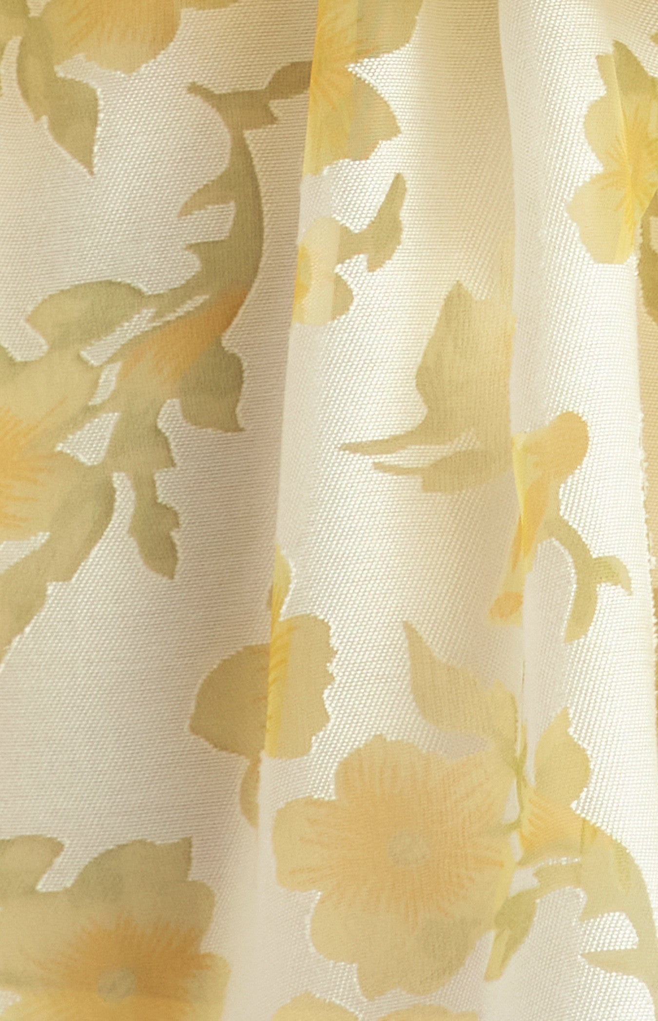 Floral Organza Fabrication & Burnout Texture: Lightweight yet structured organza with a delicate floral burnout pattern for visual depth.