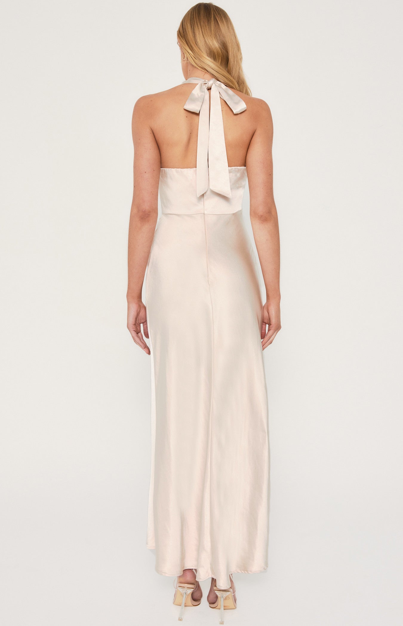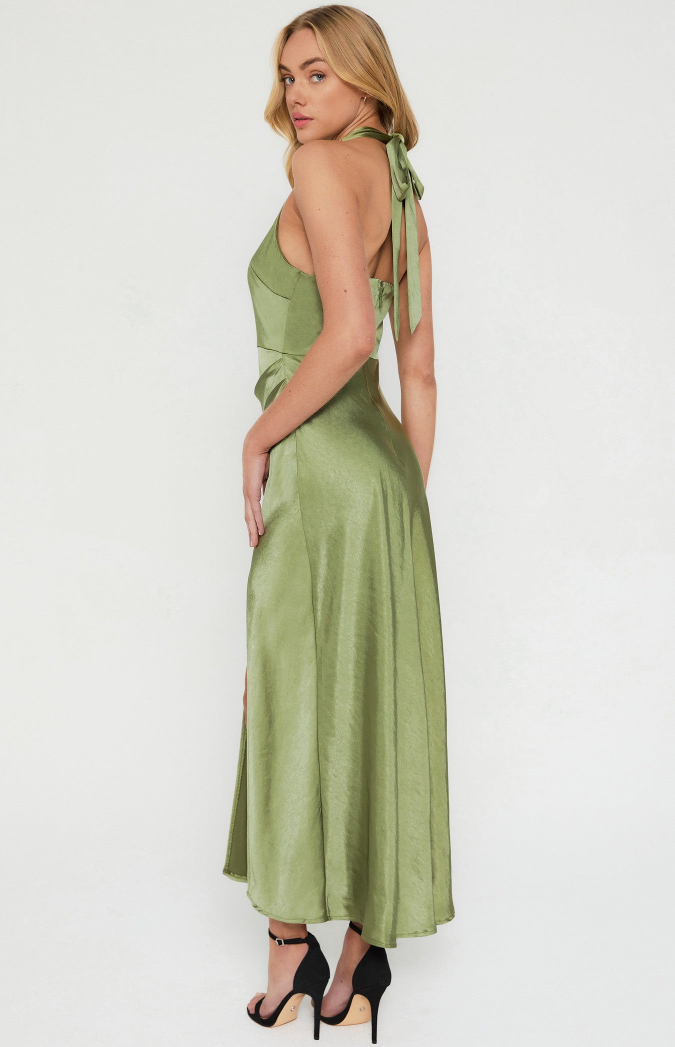 Add this Satin Halter Neck Midi Dress to your wardrobe for a go-to piece that blends luxury, comfort, and versatility.