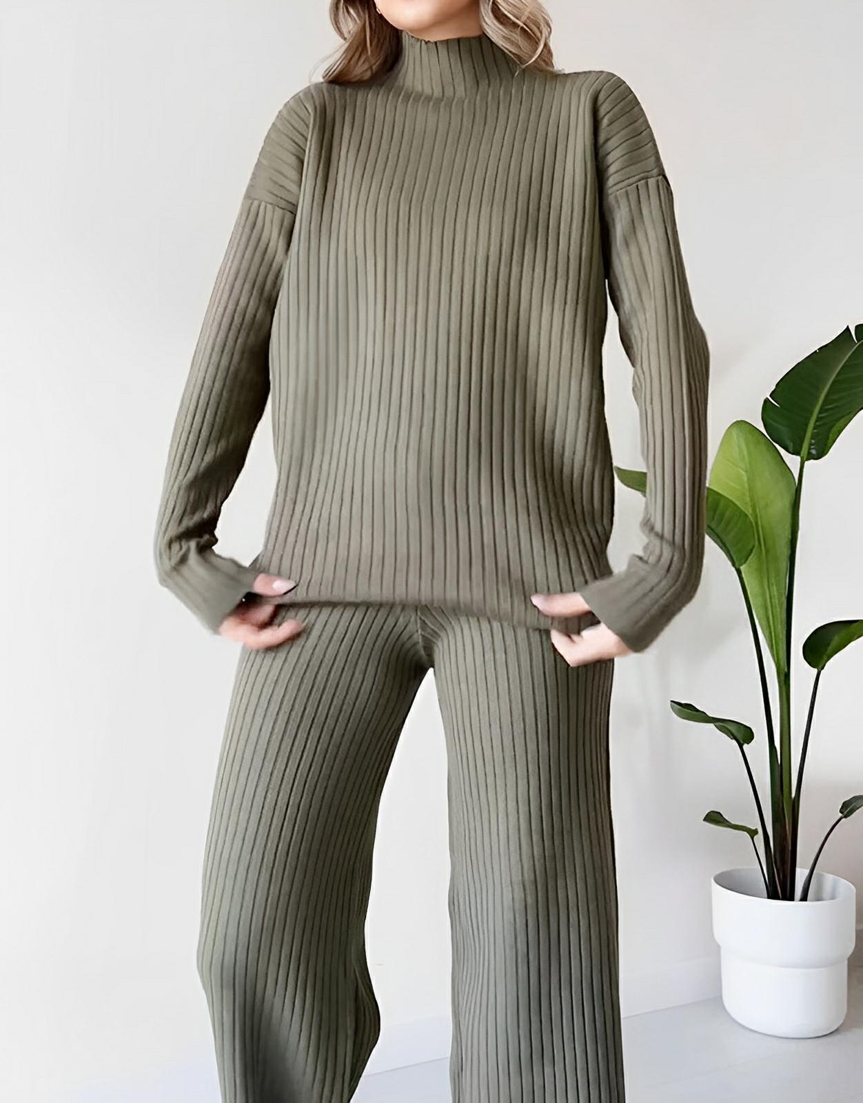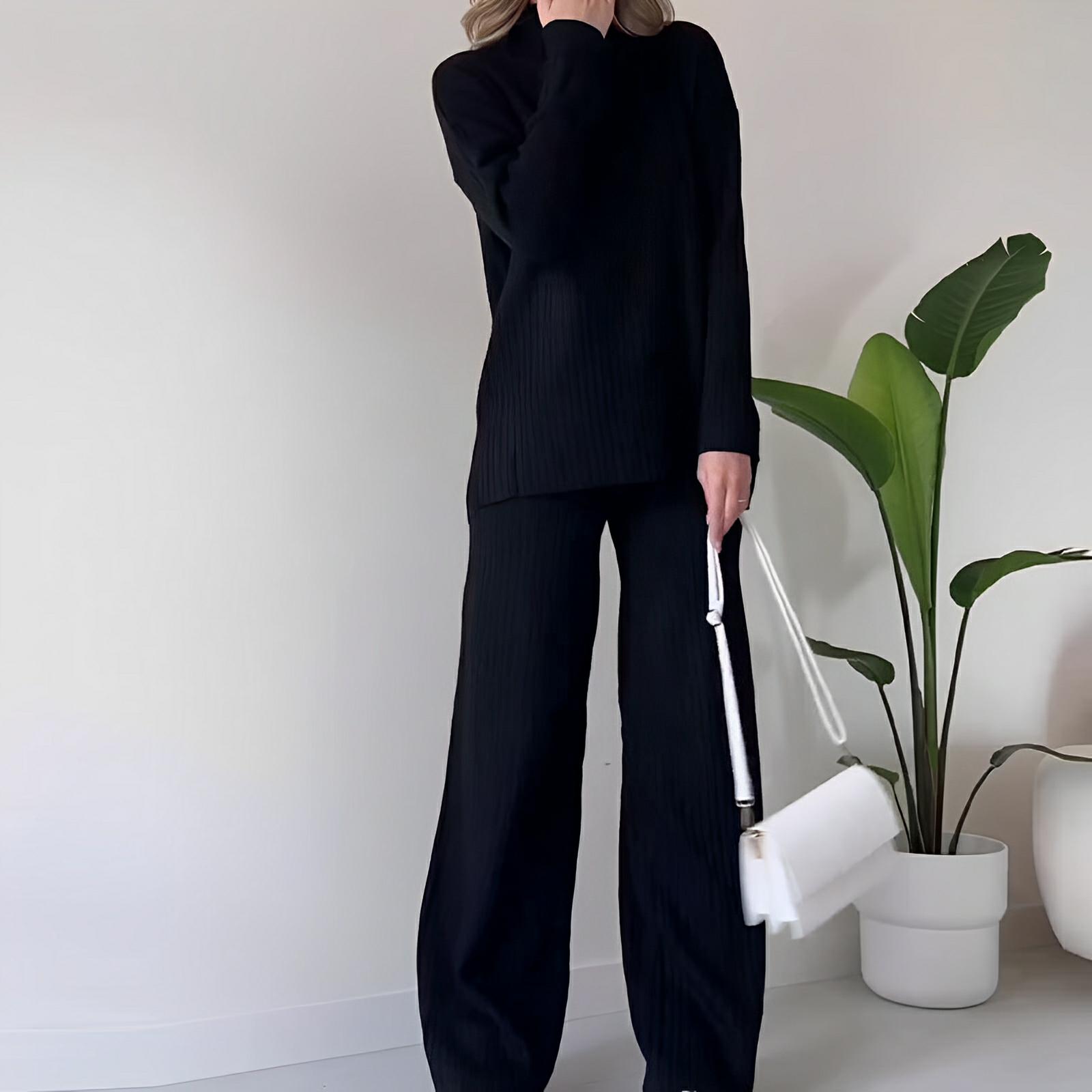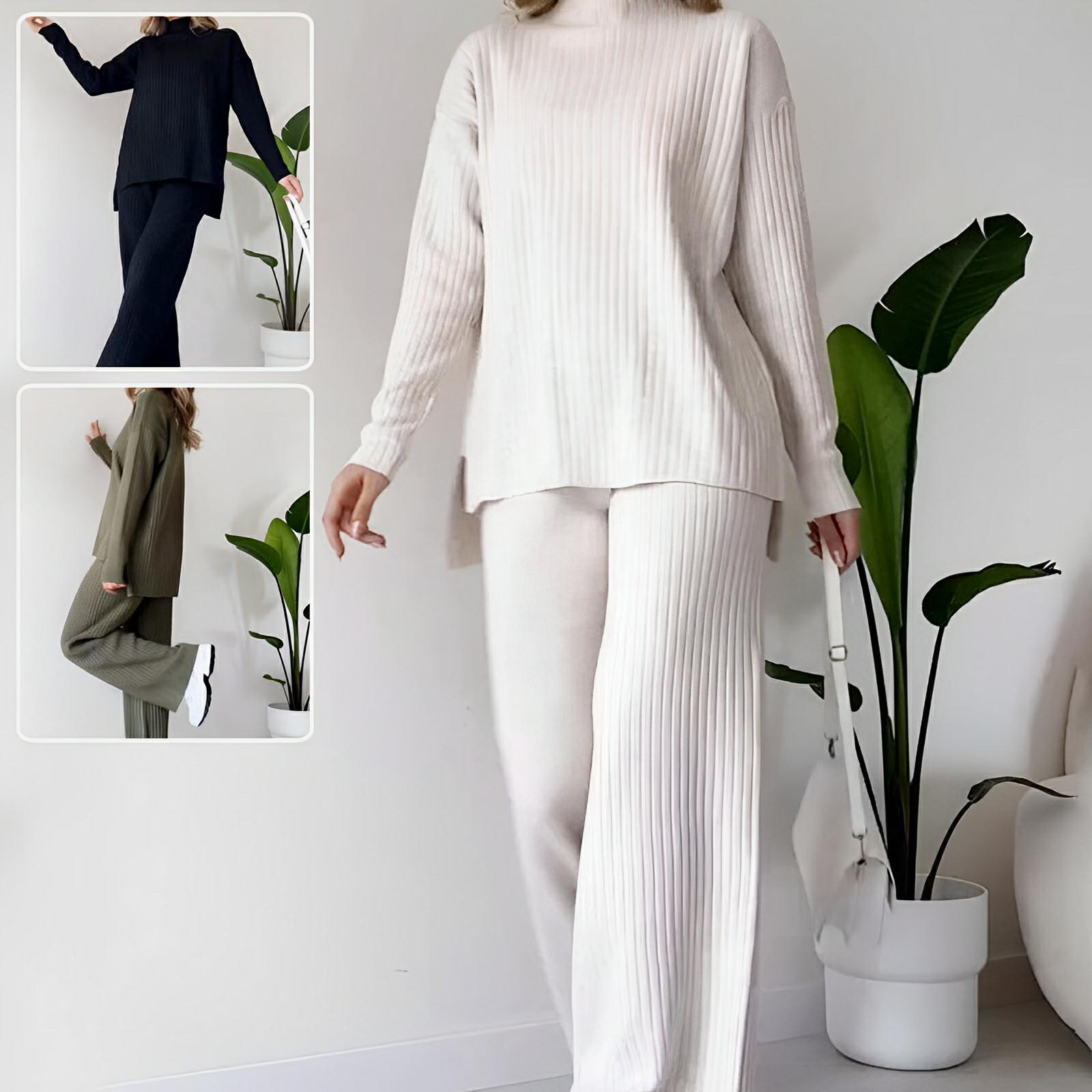 Refresh your wardrobe with this modern two-piece ensemble that perfectly blends cozy comfort with sleek, contemporary style. The Split-Hem Turtleneck Knit Set includes a relaxed, long-sleeve sweater with side splits and high-waist, straight-leg trousers—designed for effortless layering and all-day wear. Crafted from soft, medium-weight knit, it’s ideal for transitional weather and your everyday Swiss lifestyle.