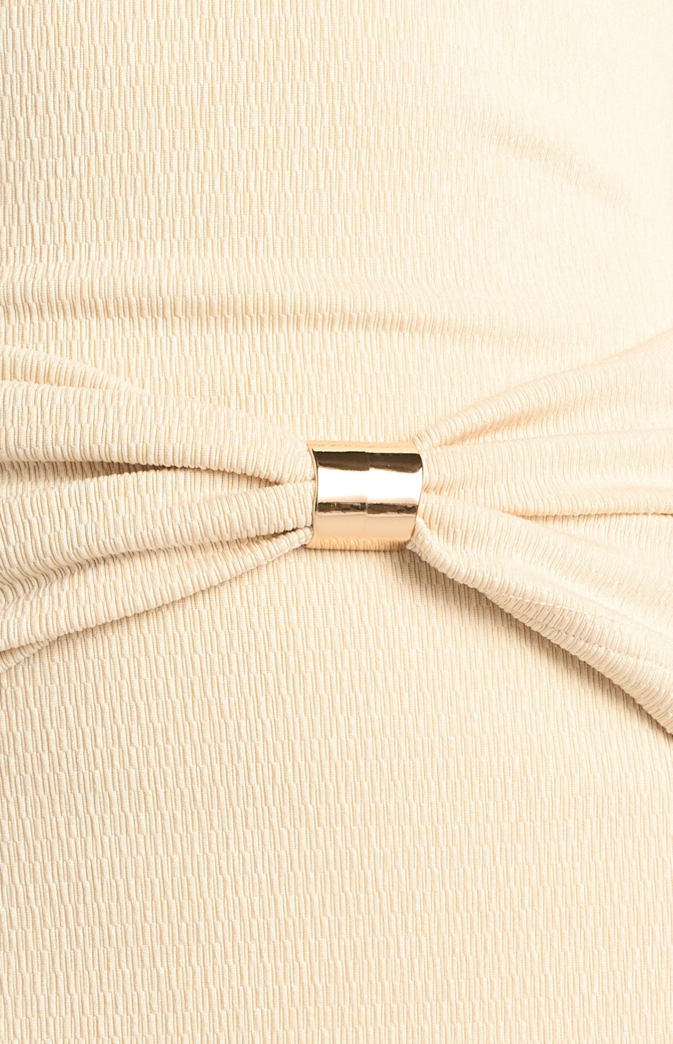 Textured Jersey Dress with Waist Gathering and Gold Ring Feature