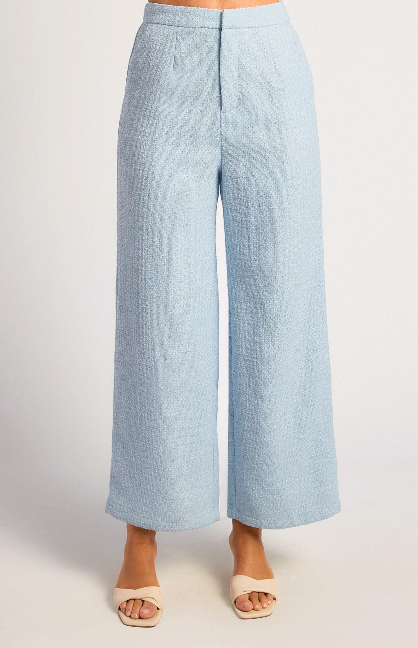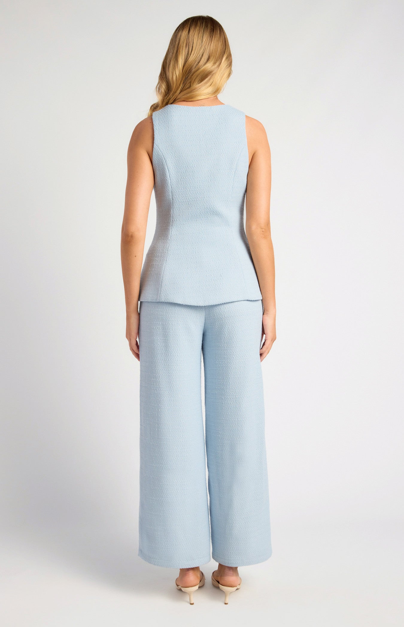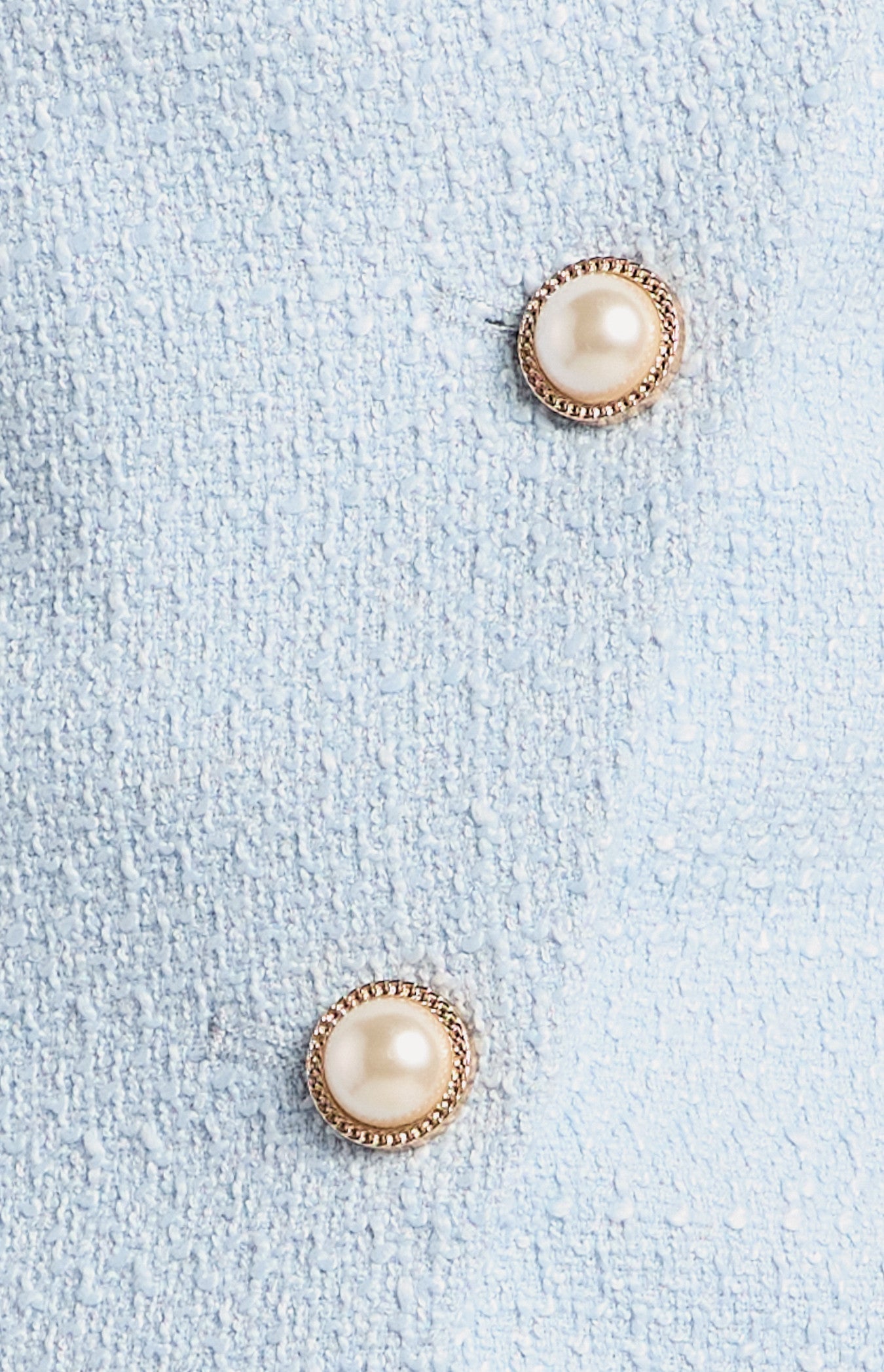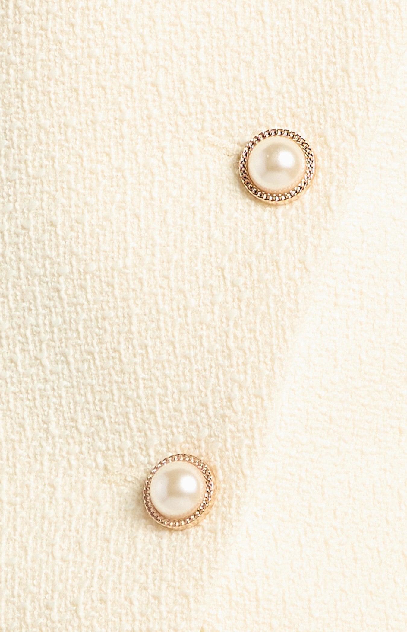 Tweed Asymmetric Top and Pants Set with Pearl Button