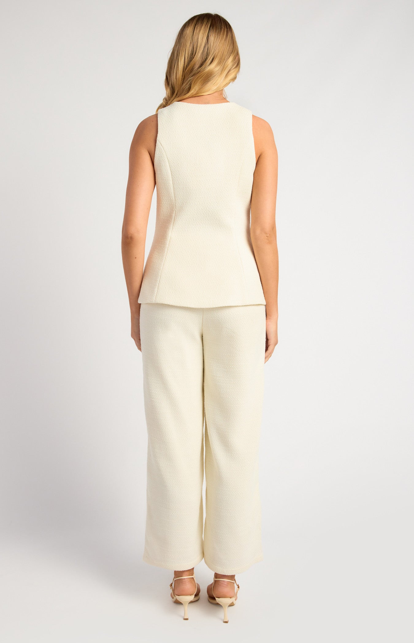 ● Tailored High-Waisted Pants: Sleek fit elongates the legs and complements the structured top